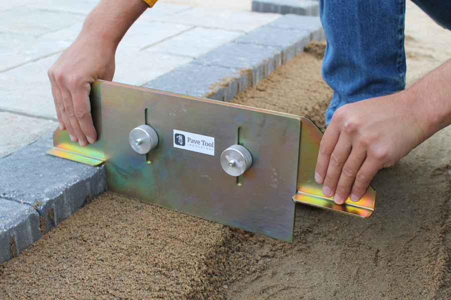 Adjust the gauge by loosening the knobs and aligning the plates to match your paver thickness (in millimeters).